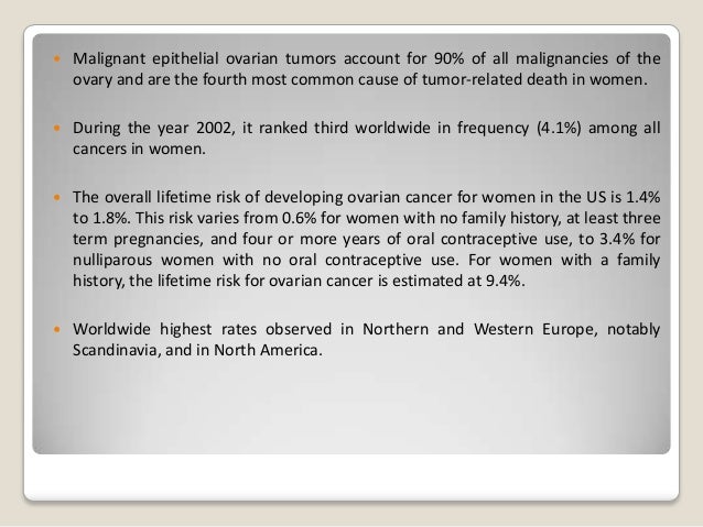 It results in abnormal cells that have the ability to invade or spread to other parts of the body. The death rate from ovarian cancer was the same in the two groups. The initial surgery for ovarian cancer also helps determine how far the cancer has spread, described by the following stages There is also some evidence that women at high risk of ovarian cancer who have regular screening are more likely to have all their cancer removed by. There is no clear evidence to suggest that ovarian cancer screening with currently available methods will result in a decrease in the number of deaths from ovarian cancer.
